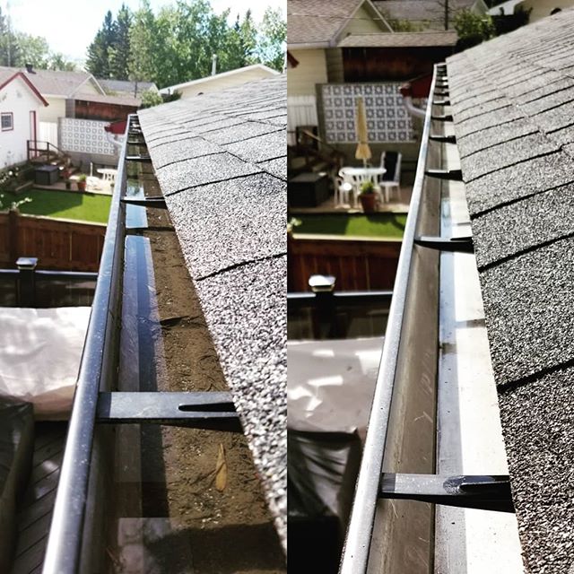 A dirty eavestrough is usually clogged with debris such as leaves, twigs, and other materials resulting in rainwater spilling onto the roof or running down the side of the building, damaging the roof and structure of your home.