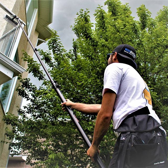 Depending on the accessibility, our exterior window cleaning service technician will use either a squeegee and scrubber or a water-fed pole brush connected to a water purification system.