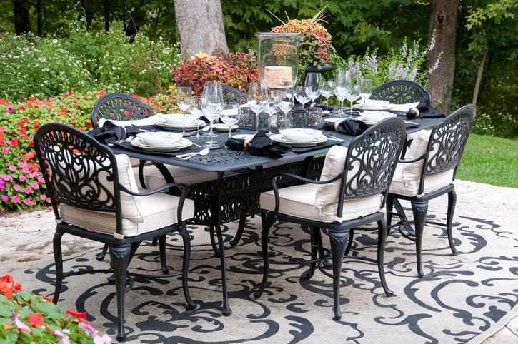 For example, if you need a rug to go under an outdoor table and seating area, making sure it can accommodate both the table and the chairs (when pulled out) comfortably is your reassurance that you have chosen the right rug size. For even more impressive results, try matching table setting details to colours in the rug; just like we do with indoor rugs. You won’t believe how easily you can spruce up older outdoor chairs and tables with a rug of the right size!