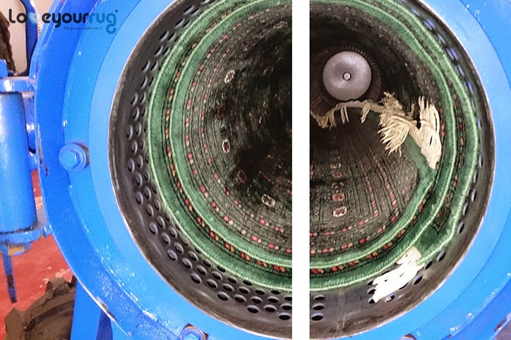 Your rug will then be rolled up and put into our centrifuge machine. In the centrifuge, all the remaining water and moisture is completely drained from your rug, ensuring that no dyes stain it and that your rug keeps its natural colours and texture.