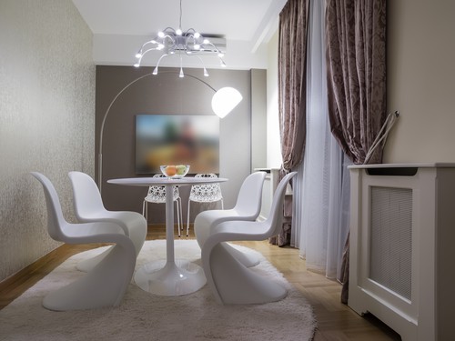 Don’t think that just because you have an oval or round table, you have to buy a rug with round edges. You can pick a rectangle one although opting for a circular shaped rug will help bring more consistency. Undeniably, they will both look great!